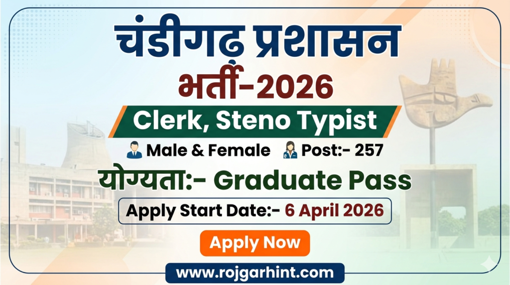 Chandigarh Administration Clerk Recruitment-2026: The Chandigarh Administration has released the latest new vacancy notification for the recruitment of 234 Clerks and 23 Steno-Typists in Chandigarh Administration under the Chandigarh Administration, Group C (Clerk and Steno Typist) (Common Cadre) (Ministerial) (Non-Gazetted) Recruitment Rules, 2026, on a regular basis. The Chandigarh Administration Clerk & Steno Typist Recruitment 2026 Notification has been released on 1 April 2026, and the online applications are invited from 6 April 2026. Other details of Chandigarh Administration Clerk & Steno Typist Recruitment 2026 will be updated here after the release of the detailed notification PDF on the official website. Right now, only a short notice has been released indicating the vacancy details and the start date.