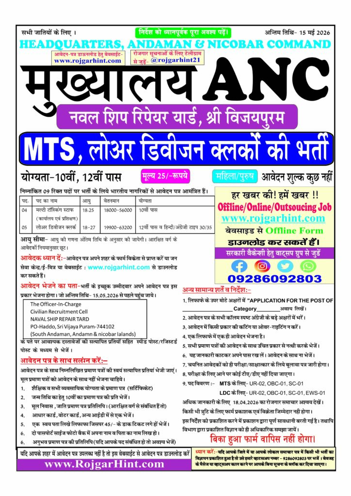 Recruitment for the post of:- MTS, Lower Division Clerk