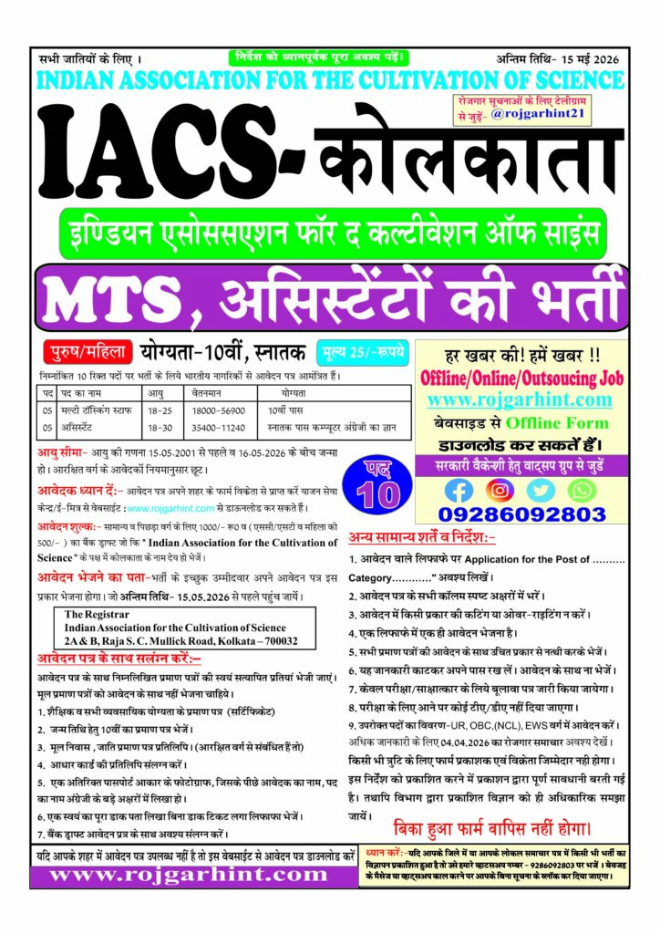 Recruitment for the post of:- MTS, Assistant