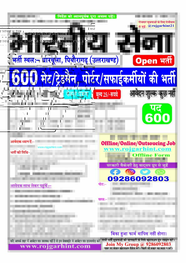 Recruitment for the post of:- Porter, Mate/Trademan, Safaiwala