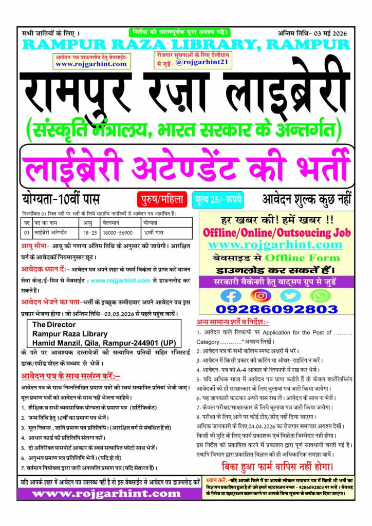 Recruitment for the post of:- Library Attendent